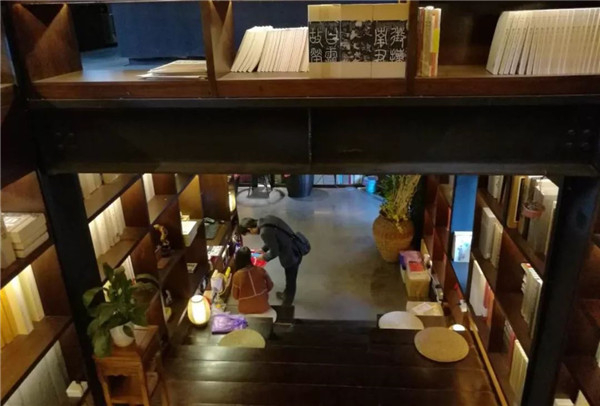 这是一家品类齐整的艺术书店,一楼陈列各类艺术书籍、杂志、画册、文创等,这么全品种的艺术图书,在其他书店很难见到,还有很多中国美院学生的毕业作品及很多艺术展览图册。二楼摆放大部头的艺术画册和全集,也是平时举办“南山雅集”的地方。