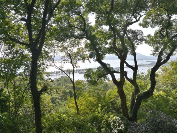 书吧二楼阳台上,孤山、断桥在树木间隐现,真是一坐就不想动。给张翎老师发过去照片,她说“你终于来了”,并建议我跟主人朱锦绣聊聊。我因为还有后续书游计划,没敢在这里多停留,下次一定约三五好友再来闲坐。后来在北京见到朱锦绣女士,她随《书店风景》作者钟芳玲来京参加活动,见面后才知道,她原来也是温州人,又一位办书店的老乡。