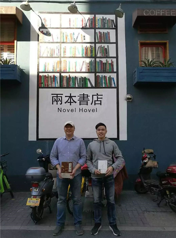 两位侄子分别拿着《南华录》和《赖声川的创意学》和书店合影