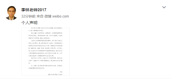 当事老师回应:网上相关言论不实今天下午,李林通过个人微博发布声明:没有参与过历年(包括今年)的考研命题,也没有参与过历年(包括今年)考研大纲制定,网络上的相关言论不属实。