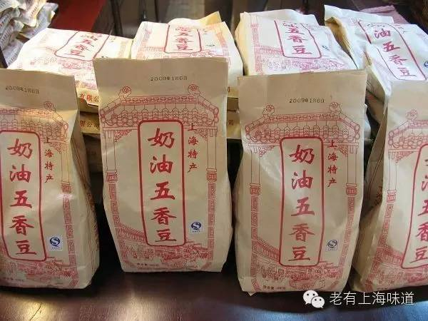 五香豆商店的上海土特产:五香豆入口甜,甜中带咸,可以盘桓多时,此时口中津液充盈,仿佛波涛汹涌。咬破皮后,牙齿接触到它软而有弹性的豆子,此时味道虽然淡了点,但咬嚼的快感随之而来,最后将豆香与豆子细末一起咽下,回上来一股浓郁的奶香。
