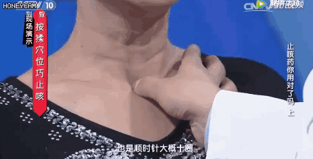 轻轻地向下、向内按摩天突穴。先顺时针按10圈,然后交换逆时针按10圈。知道皮肤呈现微微发红状态,呼吸就变得通畅了。