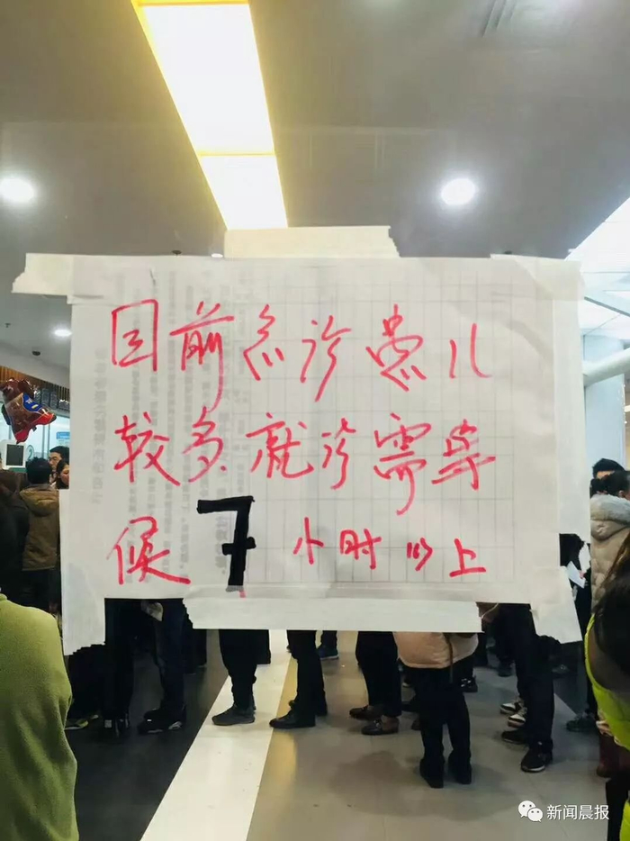 前天晚上儿童医院急诊贴出告示需要等待7个小时 读者供图