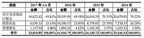 招股书显示,康宁医院的主营业务涵盖:诊疗及其他医疗服务、销售药品以及对其他医疗机构的管理服务。
