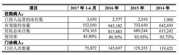 招股书数据显示,2014年至2017年上半年,康宁医院的床位使用率均在90%左右。并且在温州康宁医院、青天康宁医院、苍南康宁医院、永嘉康宁医院等多家医院中实际投入运营的床位数量都远远超过了注册床位数。譬如在永嘉康宁医院,实际使用的病床数是注册数的近三倍。招股书中解释称,精神疾病患者的就医需求增加,对精神专科床位的需求量持续扩大,为了使更多的精神疾病患者得到及时和有效的治疗,公司在保证医疗质量和医疗安全的前提下,适度增加投入运营的床位数量,导致超出注册床位数。