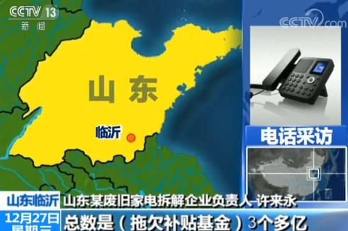 山东某废旧家电拆解企业负责人 许来永:我的资质是280万台,实际上我每年处理200万台左右,今年2017年我可能达到220万台。总共是(拖欠补贴基金)3个多亿。