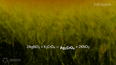 硝酸银和氯化钠生成氯化银的过程如同奔腾的瀑布。