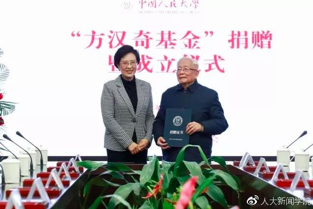 12月24日,方汉奇将所获奖金100万元全部捐赠设立基金。“方汉奇基金”在中国人民大学成立。