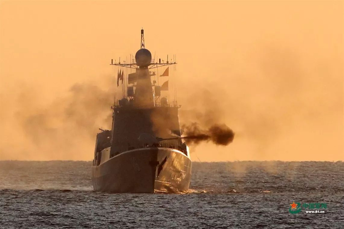 石家庄舰主炮开火。解放军报记者 李三红 摄
