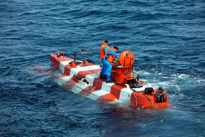 俄海军深潜救生艇艇员准备进舱。莫小亮摄