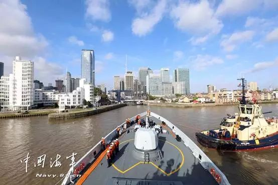 这是中国海军舰艇编队第4次访英,也是首次靠泊伦敦港对英国进行友好访问。第26批护航编队黄冈舰准备通过船闸驶入伦敦港金丝雀码头。林健  摄