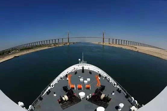 当地时间9月4日,中国海军和平方舟医院船顺利通过苏伊士运河,这是该船首次通过苏伊士运河。图为中国海军和平方舟医院船缓缓通过横跨苏伊士运河上的坎塔拉大桥。江山 摄
