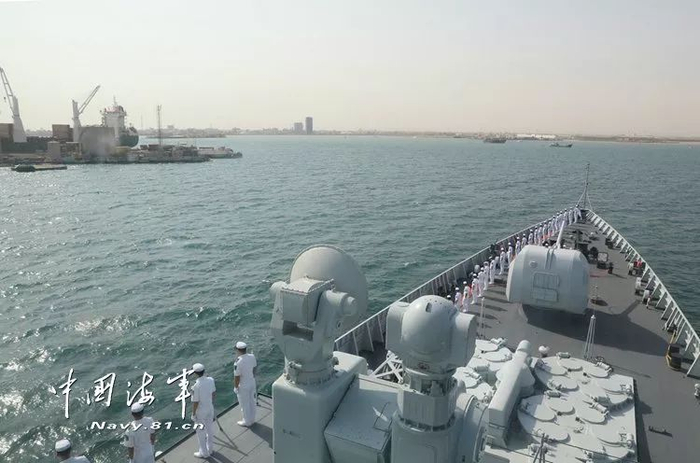 海口舰缓缓驶入吉布提港。刘鑫 摄
