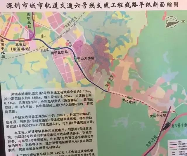 6号线6号线支线位于光明新区内,起于翠湖站东侧,终点为公常路深莞边界。连接光明中心片区、光明北区、中山大学深圳校区,支持光侨路、公常路走廊两侧发展,预留延伸至东莞1号线一期工程终点黄江中心的条件。