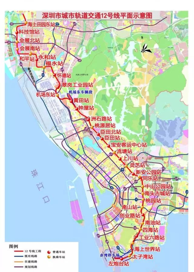 12号线自南向北串联蛇口自贸区、南山中心区、宝安中心区、福永片区、大空港及会展片区。线路起点预留延伸至赤湾二路条件,终点预留延伸条件。