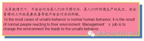 因此,安全管理工作就是要改变导致不安全行为的环境,从而减少或小区不安全的行为。