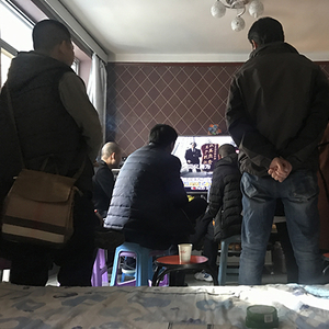 12月18日,李国武追悼会现场,有网络主播在直播 。张维 图