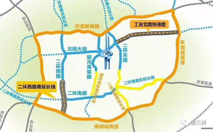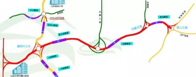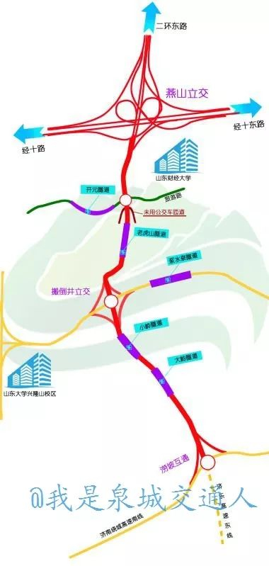 二环东南延项目建成后,济南5座互通立交桥可实现无缝交通转换,分别为: