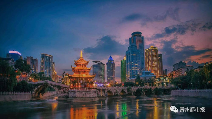 甲秀楼:可谓是贵阳的标志了,始建于明万历年间,现存建筑为清宣统年间重建,三层的小楼屹立在鳌矶石上,面前是流淌着的南明河。甲秀楼的夜景尤其漂亮,从远处望去,灯火辉煌。