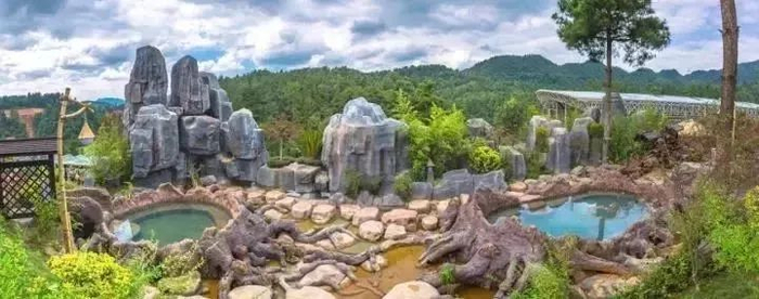 石阡温泉含138个泡池,由造浪池、疯狂大喇叭、森林泡池区、石林泡池区、温泉接待中心、景观泡池区、古温泉中心舞台、私家园林别墅、儿童梦幻水屋、特色餐厅、七彩滑道、私家园林露天泡池、迷幻漂流河、娱乐休闲园、温泉美食组成。