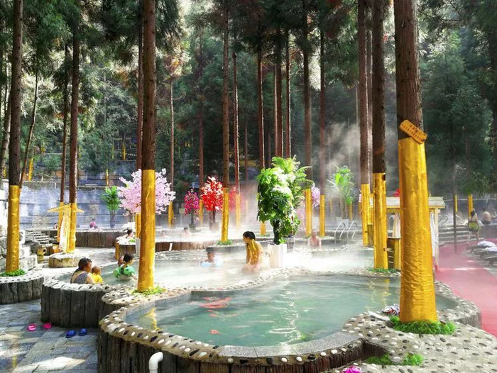 温泉井深1600余米,出水量1400吨/天,温泉泉水以硫磺泉为主,富含偏硅酸、偏硼酸、偏磷酸等三十余种微量元素及铅、锶、硒等二十余种矿物质,温泉水PH值高达7.7可直接饮用,温泉有室内泡池8个,室外露天园林式泡池30余个,含鱼疗池、儿童池、药池等!