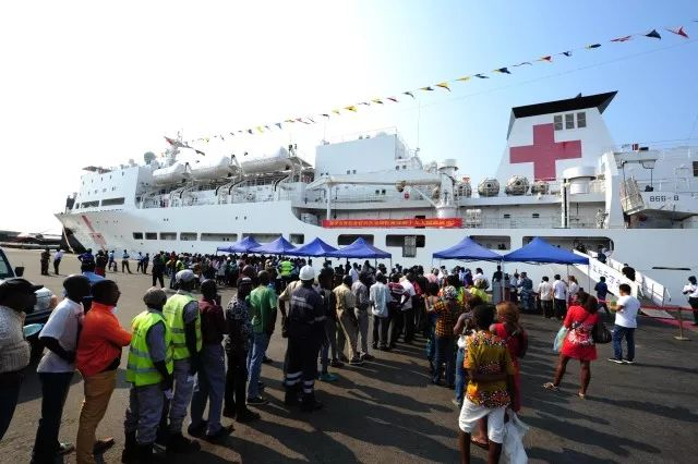 10月19日,和平方舟医院船抵达罗安达港,开始对安哥拉进行为期8天的友好访问并提供人道主义医疗服务。这是和平方舟首次到访安哥拉。安哥拉罗安达码头,当地民众有序排队前往和平方舟医院船就诊。