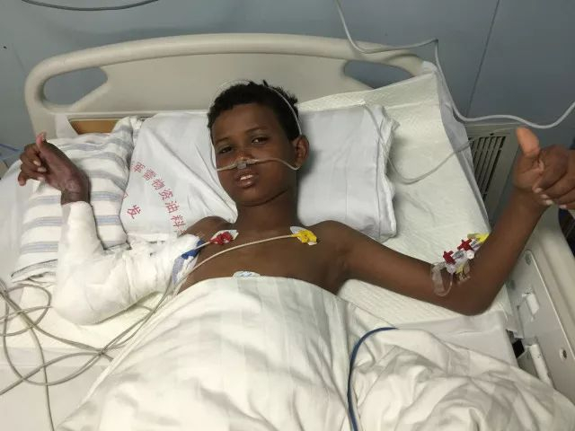 阿普迪卡依,是吉布提多哈雷村的一名9岁男孩,因为触电,他的胳膊被严重烧伤并与胸壁黏结而严重畸形。“经过手术后,他的上臂与胸壁黏连牵拉部分被分开,前臂肘关节得到松解,以后就可以像正常人一样自由活动上肢了。”8月27日晚,和平方舟医生纪世召与阎晓辉为其成功实施了手术。术后的阿普迪卡依,举起大拇指点赞。展开臂膀,他的人生从此开始改变。