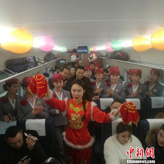 28日8时17分,郑成高铁首发的G2203次列车在郑州东站缓缓启动。旅行中,乘务员不停地向旅客介绍沿线风景名胜,并献上了优美的舞蹈与甜美的歌声。