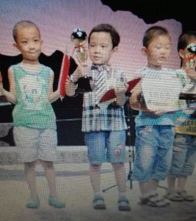 4岁时英语获奖留影,中间拿奖杯的就是小奕东