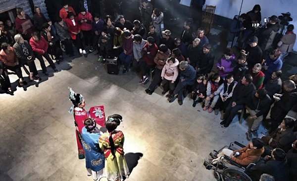 村民们集结在一起欣赏越剧。孟凡浩 图