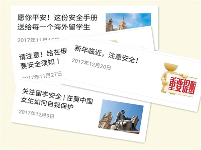 学生社团和组织在发布留学安全的相关信息上起着重要作用。图为莫斯科大学中国学生会以微信公众号为平台进行的多次安全宣讲。 |
