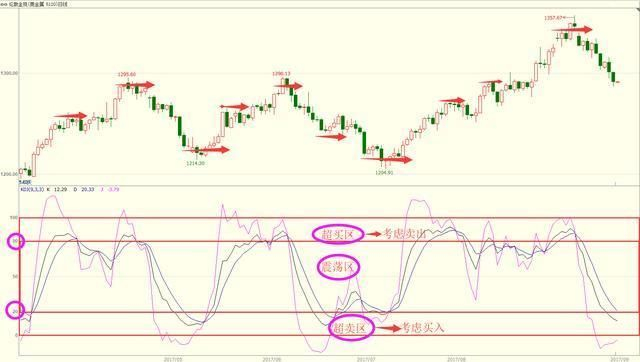 KD的取值范围都是0~100,将其划分为几个区域:80以上为超买区,20以下为超卖区,其余为震荡区。