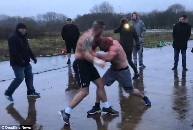 据英国《每日邮报》12月27日报道,英国赫特福德郡的赫默尔亨普斯特德镇,日前上演一幕真实的拳击比赛,双方不戴拳套和任何护具,赤膊徒手站立式拳击。双方持续攻击足足半小时,裁判几次试图终止比赛无果,最终强行拽住两人胳膊握手言和。