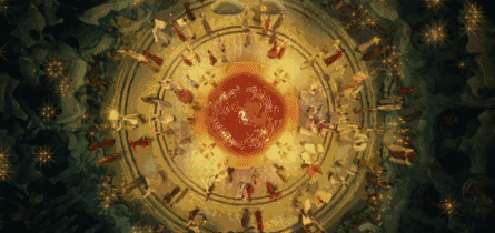 《妖猫传》结构复杂,悬念设置和嵌套叙述的难度很大,却也被梳理得很清楚,甚至可谓精巧。两个主人公如同经历了一次但丁和维吉尔式的旅行,跨越时空迷雾和虚实界限,通过多个叙述层次的相互勾连,把大唐气象的极乐之宴,用一种充满悬念和视觉奇观的方式,将中国传统文化的高峰以一种恢宏、自信、包容的姿态展现出来,不仅是唐诗、青绿山水画、建筑壁画、园林乐舞这些外在的元素,还有民族文化思想积淀和民族文化心理中的原型。