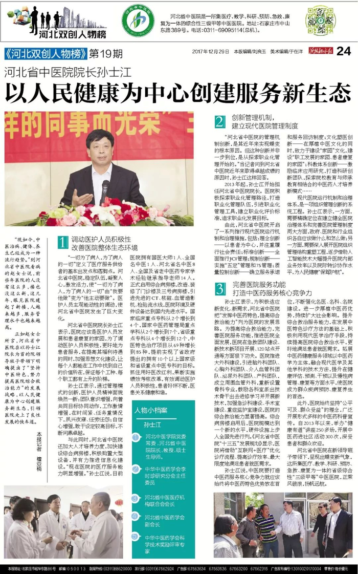 双创人物 | 河北省中医院院长孙士江:以人民健康为中心创建服务新生态