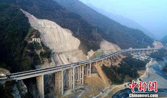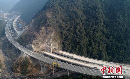 雅康高速泸定段建在半山的高速公路。 刘忠俊 摄