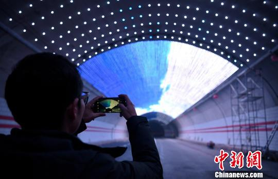 雅康高速二郎山特长隧道内的防疲劳蓝天灯光。 刘忠俊 摄