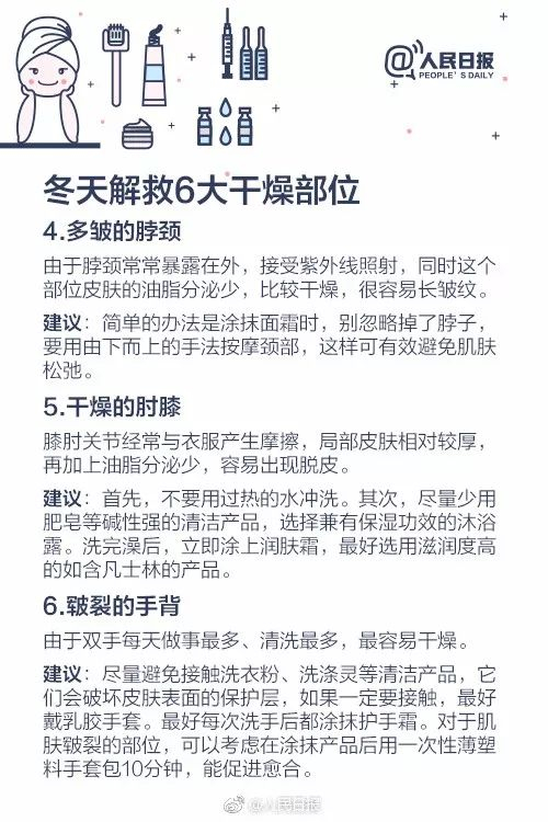 江浩波建议,要想冬天皮肤不受损,最经济有效的方法是减少洗澡次数,不用碱性沐浴产品,洗完澡后抹好保湿霜;洗澡时间不宜太长,一般来说,5至10分钟就可以了;水温也不要太烫,一般水温控制在40℃左右,比体温略高,但不感觉到烫;如果水温过高,也会“烫掉”皮脂这道天然屏障。