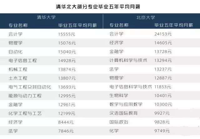 下图一份网传的清北学生各专业毕业五年后平均薪资表,数据未必精确,却足以反映问题。