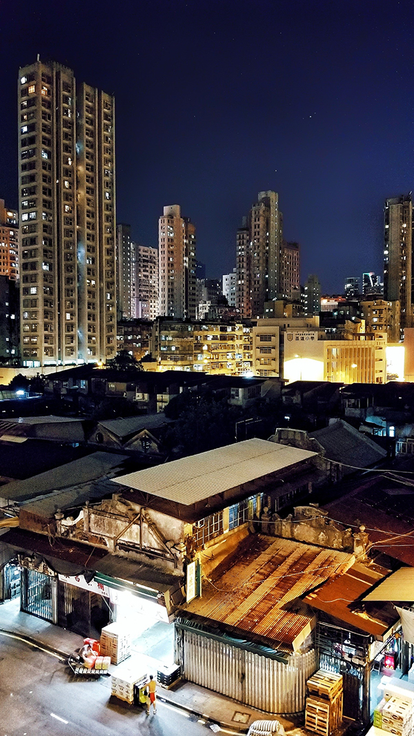 果栏坐落于香港的“心脏”——以购物、零售、饮食、娱乐为主的油尖旺区,是本地居民及游客的休闲热点区域。从果栏出发至旺角和尖沙咀,只需要10分钟的步行距离。旺角作为全球人口密度最高的地区之一,每平方公里集聚了13万人,而尖沙咀是香港著名的商业中心,拥有全球租金最贵的广东道。超高资本价值和人口密度的双重因素,助推了环绕在果栏周边的超过百米的直插云间的“牙签楼”,每平方米的房价甚至高达17万港币。在这样寸土寸金的地盘上,果栏以2-3层的低矮房屋,占据着近14000平方米的土地,这片高密度钢筋森林中的低洼田地,被市民戏谑地称作“都市里的村庄”。