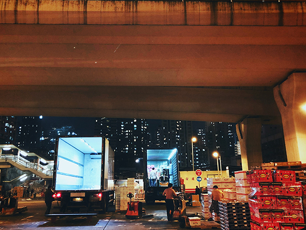 比如,高架桥下的空间成为了极佳的物流转换空间,夜间运送货车的停放填补了高架桥下多余的空间,货车不仅利用这些高大宽敞的空间遮风挡雨,而且利用高架桥临近道路的交通优势,进出方便。此外,夜间车流量较小的通勤车道也可以共享使用,有秩序地被征用为水果货物临时存放的场所。这些空间的利用体现出,公共空间使用状态的转化是临时的、非常规的、自发的和动态的,功能被使用者的差异重新刷新,秩序被时间的变化重新制定,使用价值的再定义将空间价值发挥到了最大化。