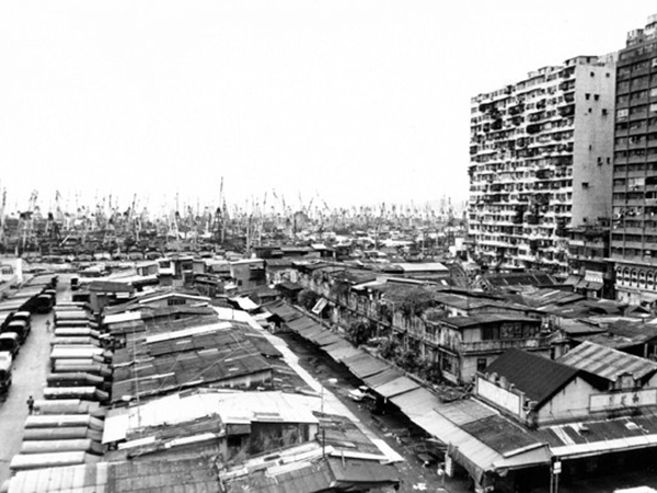 八十年代末的油麻地果栏全貌,远处可以看到避风塘及昂船州一带停泊的船。图片来自网络