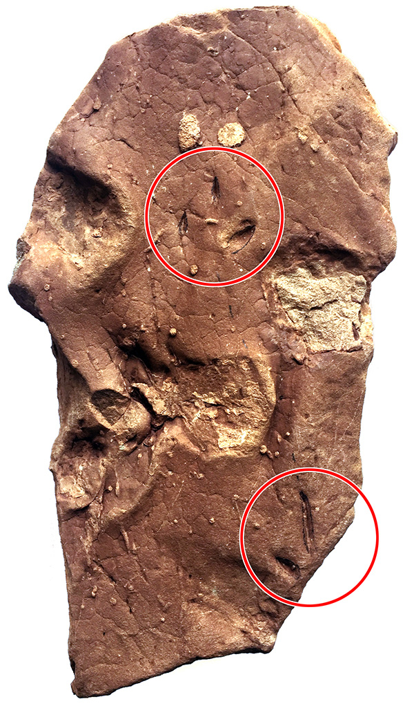 正当学生们失望之余,邢立达眼前一亮,就在“足迹”的旁边,有两个非常不起眼的三趾型印迹。“那是典型的鸟类足迹,只是大家都被旁边很深的大‘足迹’吸引,没有留意到而已。”他回忆道,化石表面还有很多无脊椎动物的潜穴,很可能是蠕虫等动物留下的。