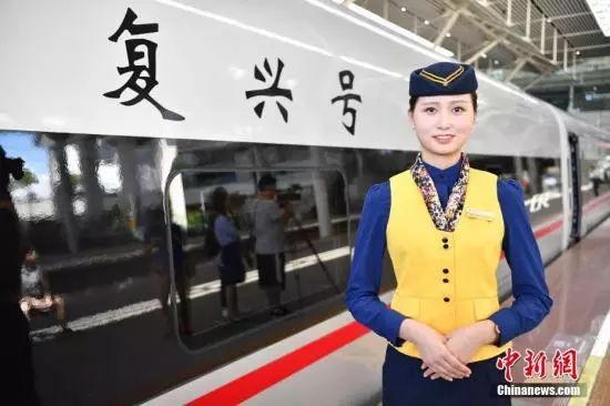 穿行在广州南与深圳北站之间的“复兴号”动车组G9731/2次列车。图为“复兴号”动车组列车员。中新社记者 陈文 摄