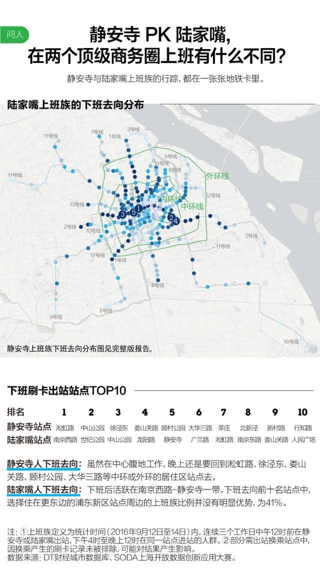 在活跃度前十名的站点中,有3个居住型站点、5个购物休闲型站点,城市中心型站点中只有毗邻静安寺的中山公园站光荣入选。尴尬的是,纵使陆家嘴对静安寺情有独钟,在静安寺人眼里,陆家嘴只能排到第35名。