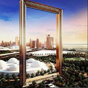 最精彩的部分要数"迪拜门"最高的廊桥。在廊桥上,游客可以欣赏到两种截然不同的风景,一边是迪拜新城的现代化与繁荣,而另外一侧则是迪拜老城的沧桑与古朴。最初,这个设计灵感就意在"将迪拜新城和老城的风景同时装入一个相框中",让身处其中的游客能够360度感受到迪拜市的全景。