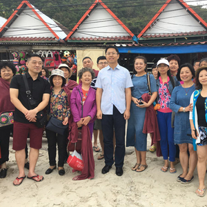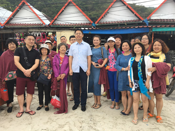 | 2017年12月28日,中国驻泰国大使馆参赞兼总领事李春林与在泰国春武里府阁兰岛旅游的中国游客合影。 |