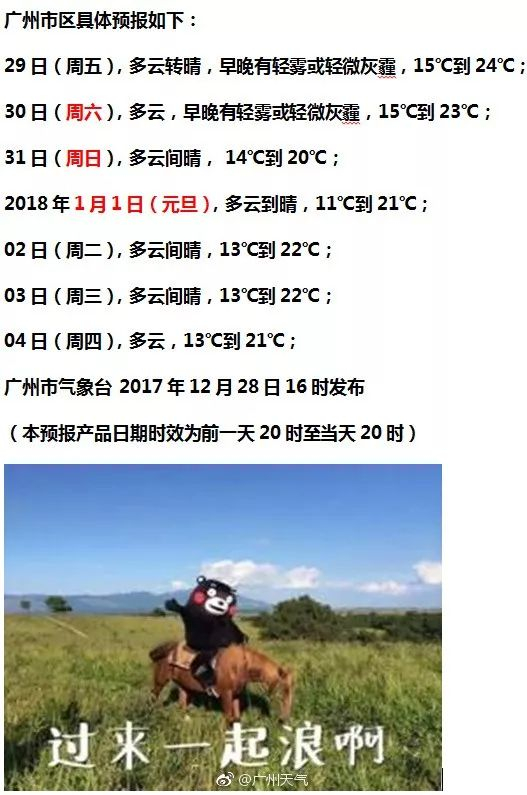 预计受冷空气影响,31日到1月1日我省气温小幅下降,日平均气温粤北下降3~5℃,其余地区下降2~4℃。