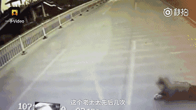 12月27日,陕西宝鸡一公交车正常行驶时,一位老太突然从路边绿化隔离带扑出来,趴在地上,车停后还往车底钻……