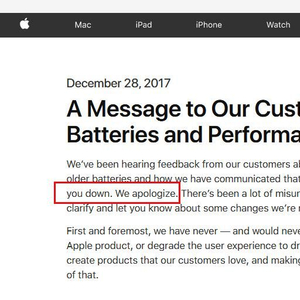 今日(12月29日)早间,苹果公司发布声明称,已经了解到用户对于苹果在老款iPhone“降速门”事件中的反馈,并表示:“我们知道你们中一些人觉得苹果让你们失望了,我们深表歉意。”